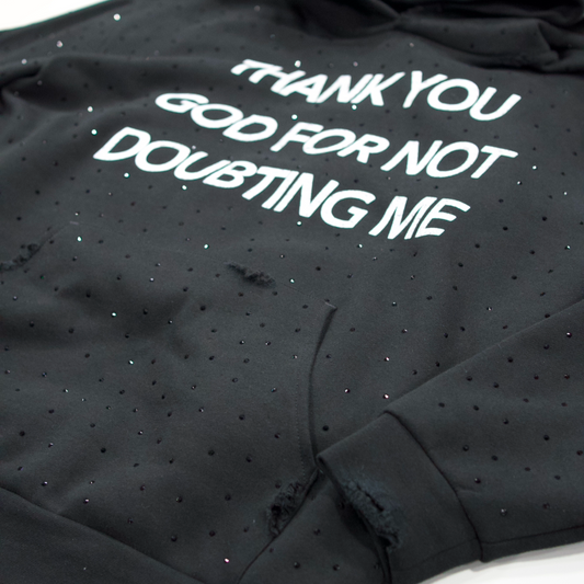 THANK YOU GOD FOR NOT DOUBTING ME Distressed Rhinestone Hoodie